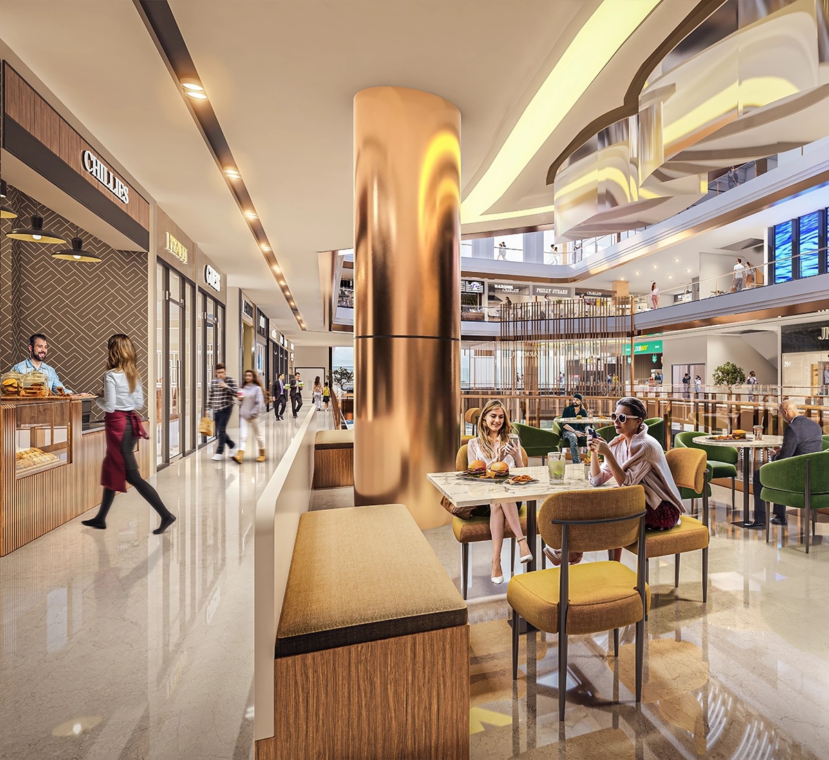 Food Court and Dining Options: The development also features a modern food court with a variety of dining options, catering to the needs of office workers, shop owners, and visitors alike.